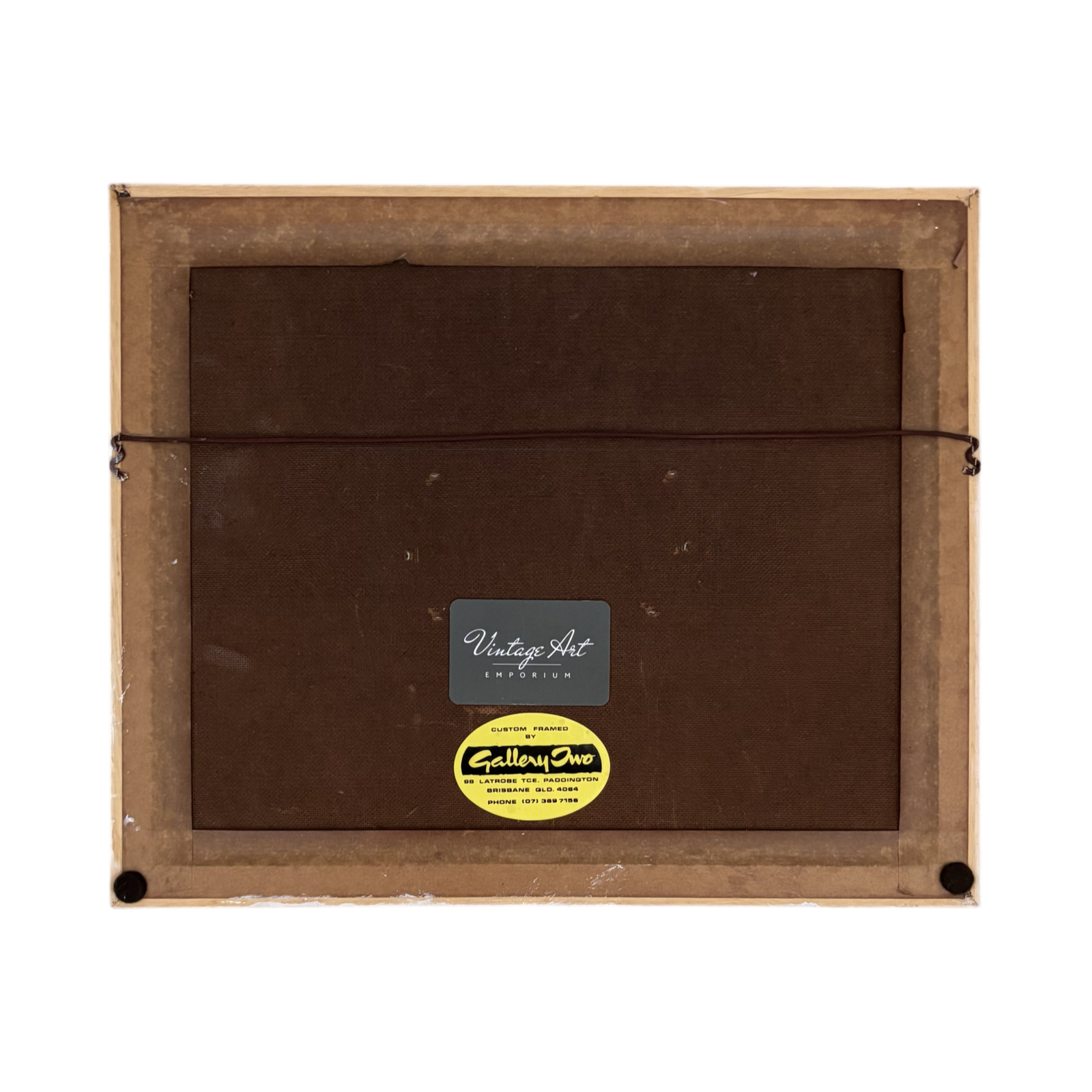 A Mid 20th Century modernist, abstract oil painting, in textured brushstrokes of predominantly greens, blue, white with a pop of red.
