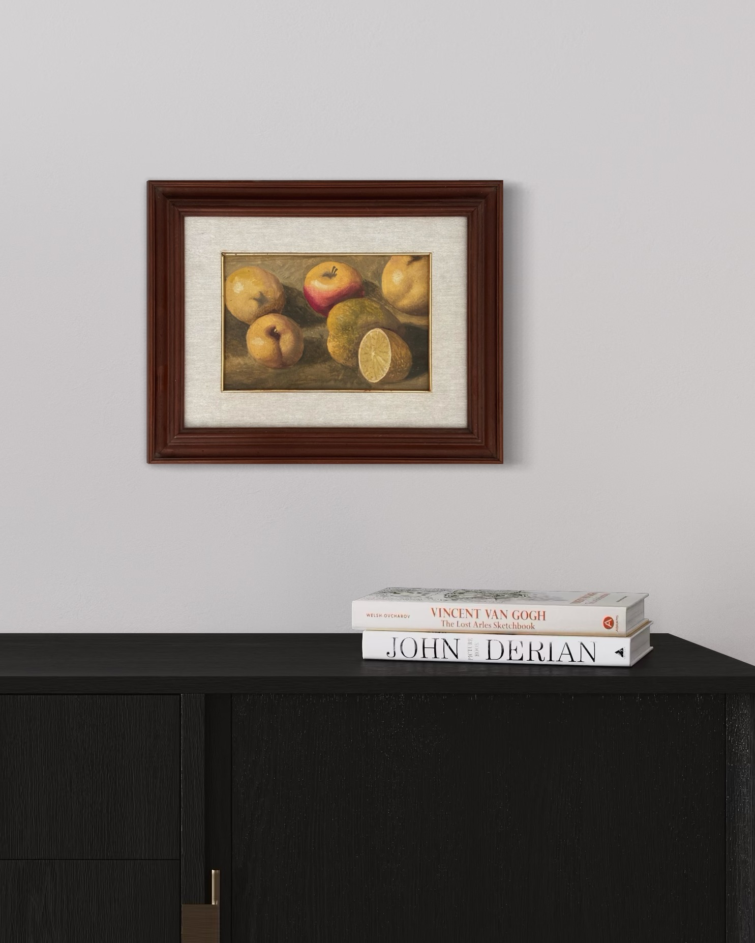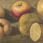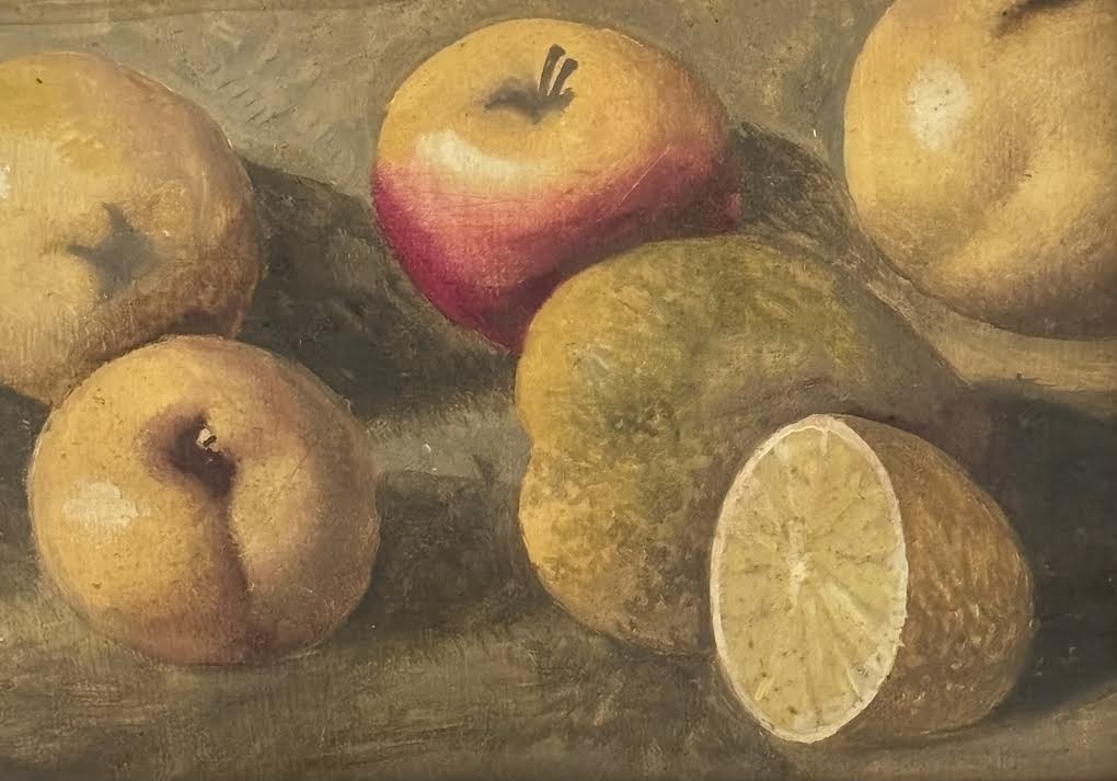A Vintage Italian Still Life; the capturing the play of light and shadow upon a grouping of fruits.
